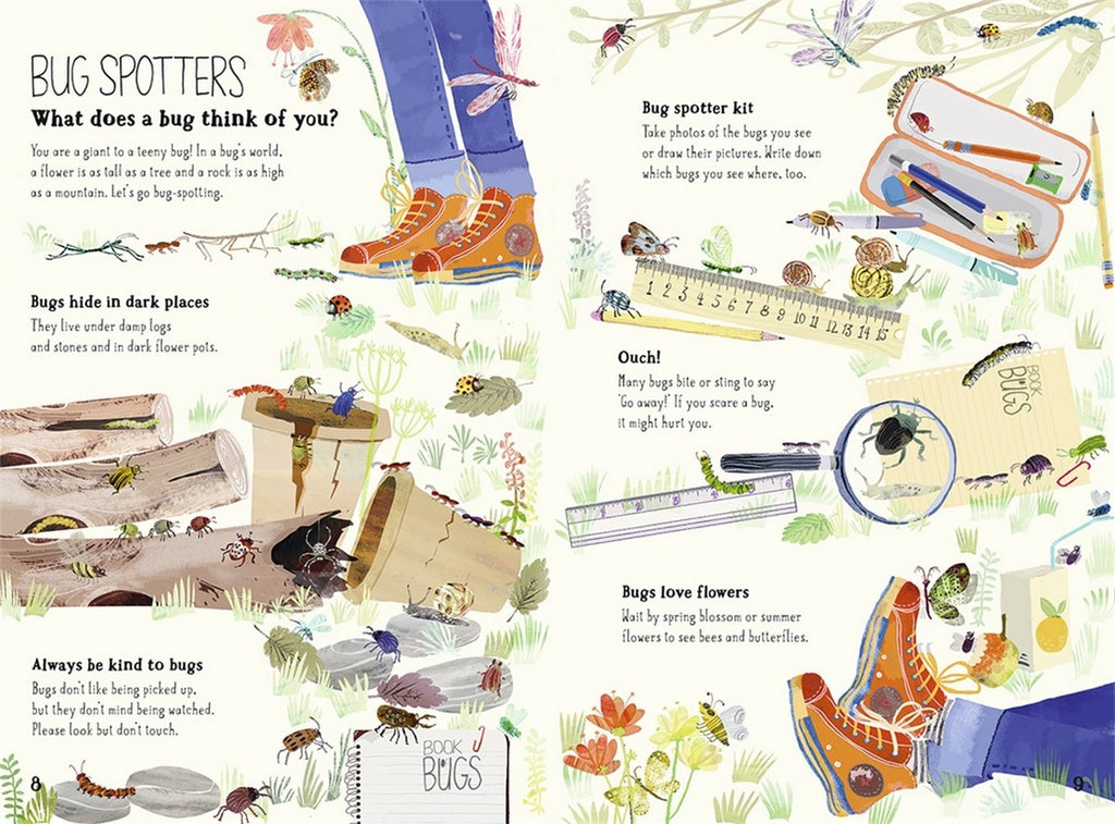 Introductory spreads explain that bugs live nearly everywhere on Earth and give tips on how to become a young bug spotter.