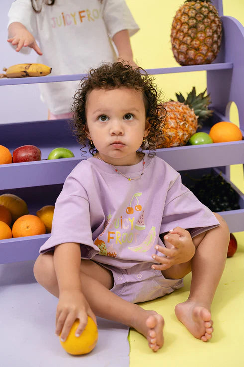 Juicy Froot T-Shirt Romper - Grape - SIZES NB, 0/3, 3/6