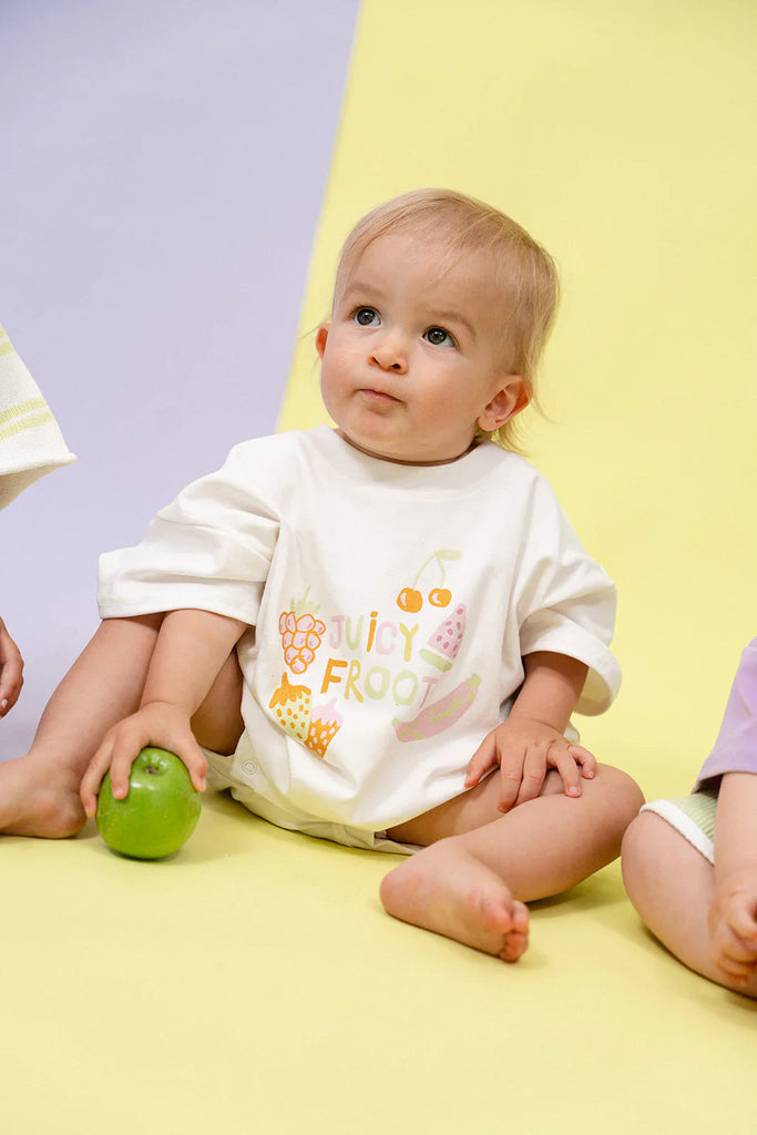 Juicy Froot T-Shirt Romper - Natural White - SIZES NB, 0/3, 3/6