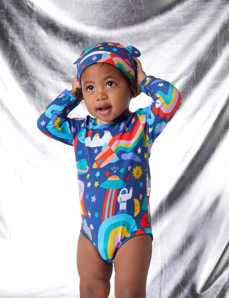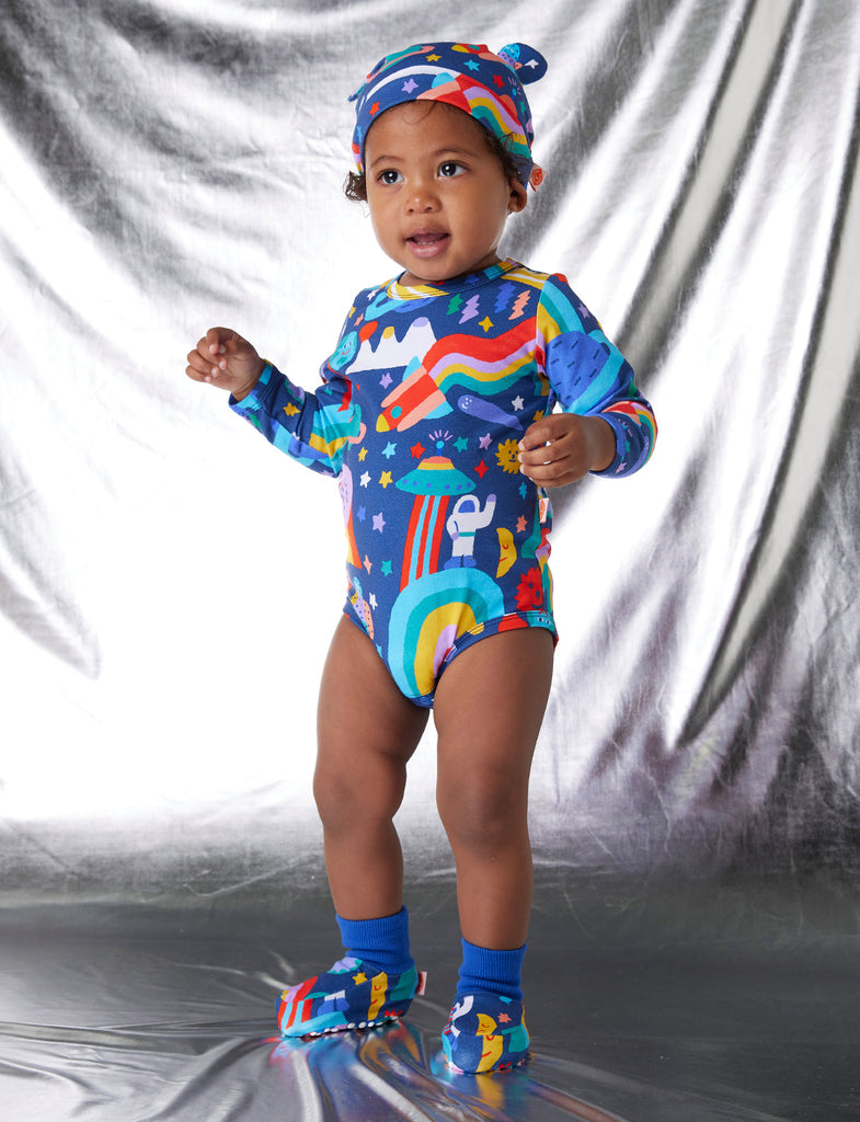 Ready, set go! Explore cooler conditions over Winter in this Halcyon Nights long sleeve bodysuits for babies.