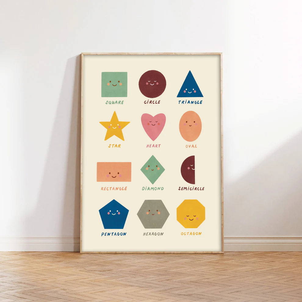 Featuring 12 vibrant shapes in a modern colour palette, this print is perfect for brightening up a bedroom, playroom, or classroom.