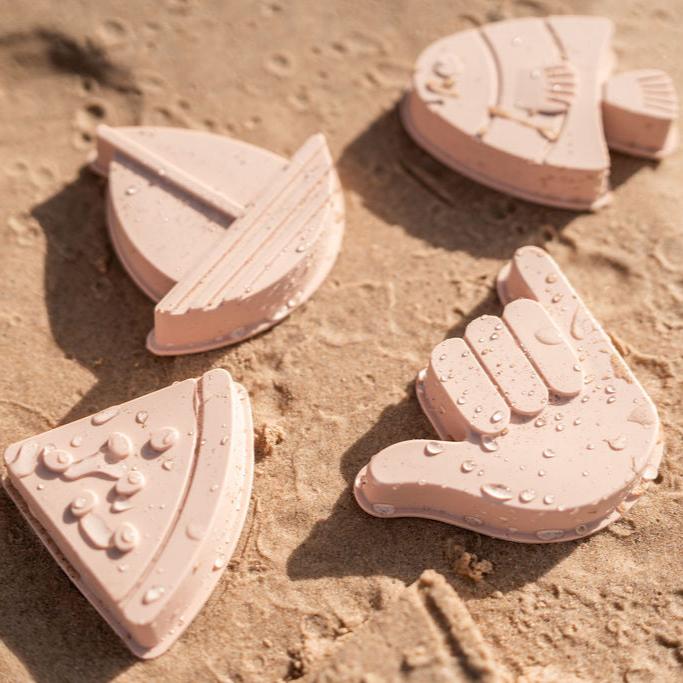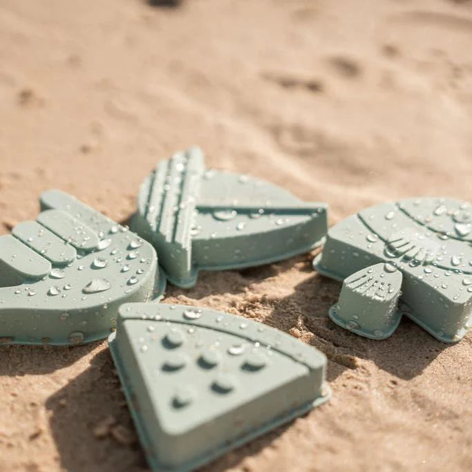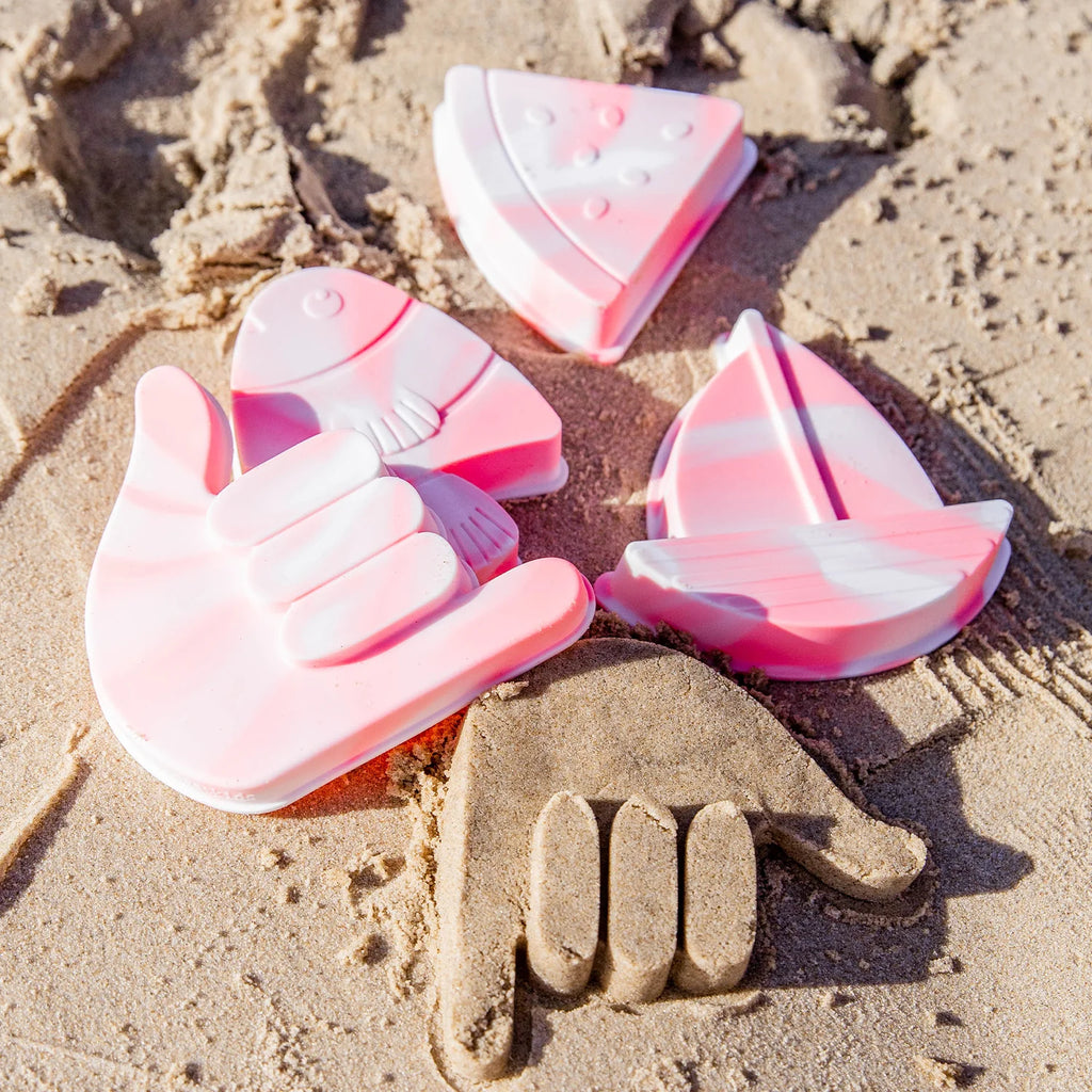 The Coast Kids Shelly Beach Moulds are silicone shapes perfect for making creations in the sand. The designs featuring a fish, shakas, boat and watermelon slice are unique to coast kids.