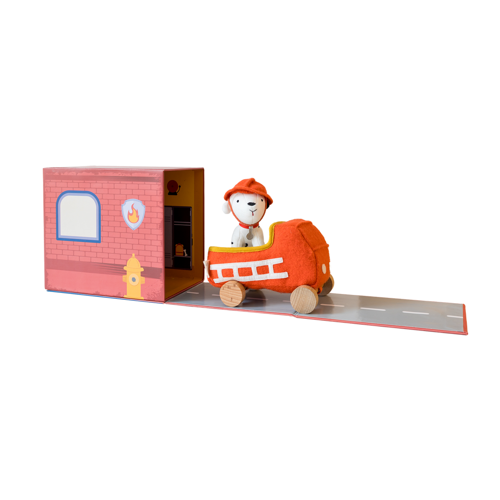 Unleash the excitement with our Holdie World™ Dog-Gos. Meet Dog-Go Chief, the fearless pooch who's blazing a trail in their fire engine, turning heads and melting hearts. When the day is done, Dog-Go Chief loves to park in their garage box, ready to play again tomorrow.