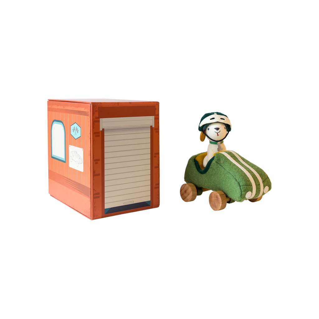 Unleash the excitement with our Holdie World™ Dog-Gos. Sporting a speedy helmet and googles, Racer Boy puts the “paws” in horsepower. Pair with Holdie Dog-Go Racer Girl and prepare for a race like no other. When the day is done, Dog-Go Racer Boy loves to park in his garage box, ready to play again tomorrow.