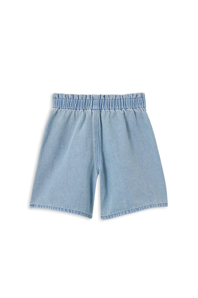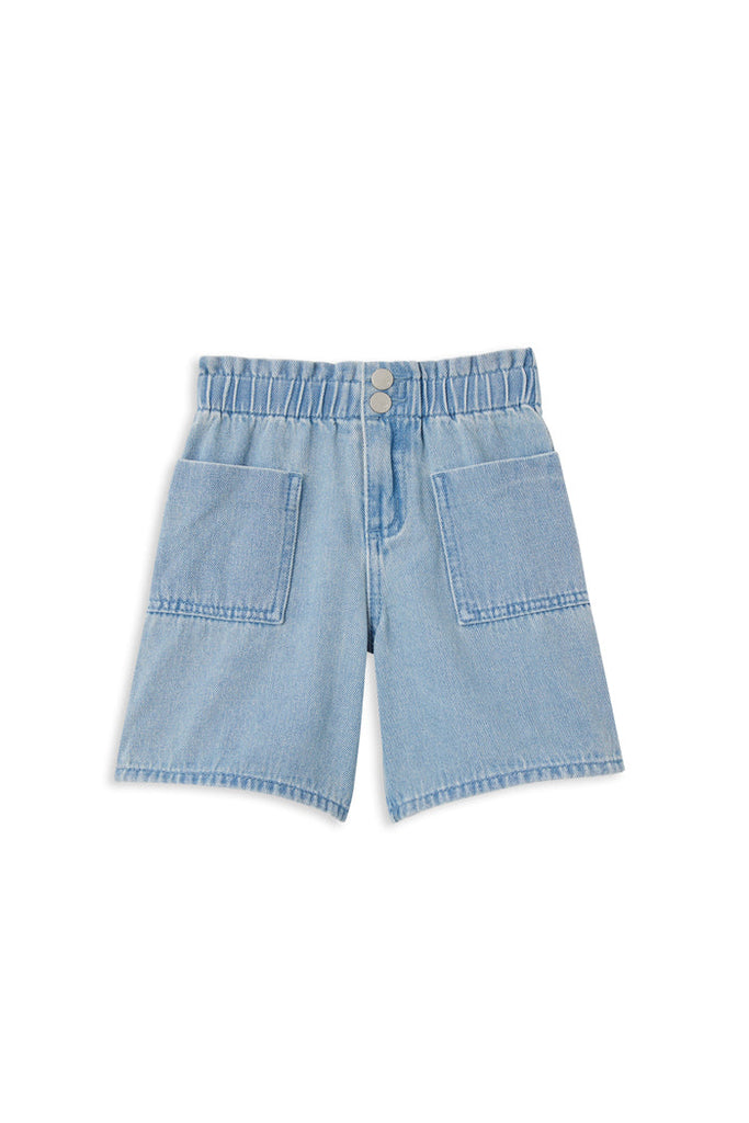 Milky Clothing Denim Short. Crafted with an elastic waistband for ultimate comfort, and complete with convenient front pockets, these shorts seamlessly blend fashion with functionality. Whether it's a relaxed outing or a more formal affair, these denim shorts offer a simple yet sophisticated dressing solution. Elevate your little ones style and comfort with these versatile essentials that are sure to become a wardrobe favourite.
